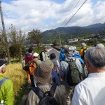 愛媛大学名誉教授(構造地質学)高橋治郎先生を講師にお迎えして、東温市川内地区の北方の断層を説明していただきながらさくらの湯まで約3㎞を散策しました。