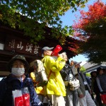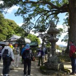 揚神社では、樹齢800年と言われているクスノキの伝説を聞き木の大きさに圧倒されながら上福寺へ、この寺にも樹齢550年と言われているクスノキがありその根は石垣を作るために2メートルうめられているそうです。
