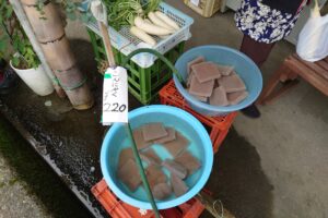 出来たてのコンニャクをポン酢でおさしみにして用意して下さっていて、これがまたとても美味でした😊